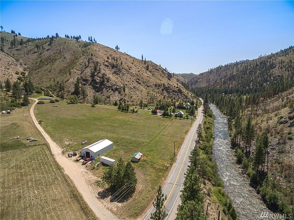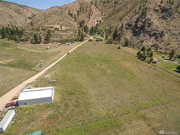 Come enjoy the Entiat River Valley with mountain views, riverfront footage, and 30 acres of land! Rural gem spans 32.91 acres with shop, garage, and various outbuildings. Garage with apartment has laundry room and bedroom on main with kitchen, living, bedroom, and bath upstairs and 12 ft ceilings. 400 amp to upper property and 200 amp to 65 x 40 steel shop with office space. Heated and insulated! 650 feet of waterfront on Entiat River. 10-12 acres of flat land, perfect building sites!