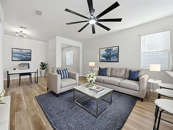 Welcome to this beautifully maintained 3-bedroom, 2-bathroom home in the sought-after Ventana Groves community of Riverview, FL. Built in 2020 and offering 1,554 sq. ft. of modern living space, this home delivers the perfect blend of comfort, functionality, and style. Step inside to an inviting open-concept layout featuring a spacious living room seamlessly connected to the dining area and a generous kitchen. The home showcases wood-like vinyl flooring throughout with tile in all wet areas, providing both durability and a cohesive, contemporary look. The chef-inspired kitchen boasts stainless steel appliances, wood cabinetry, stone countertops, and an island ideal for meal prep or casual dining. Sliding glass doors provide natural light and a serene view of the fully fenced backyard, perfect for outdoor relaxation or entertaining. The primary bedroom offers a peaceful retreat with a walk-in closet and an en-suite bathroom featuring a modern walk-in shower. Two additional bedrooms share a well-appointed full bathroom with a tub–shower combo. For added convenience, the home includes a dedicated laundry room with washer/dryer hookups and a spacious two-car garage with built-in storage. This energy-efficient home also comes equipped with solar panels (leased), helping reduce monthly utility costs, and a water softener system. Residents of Ventana Groves enjoy low HOA fees and access to fantastic amenities including a clubhouse, swimming pool, dog park, playground, and fitness center. The location is ideal—just minutes from Rivercrest Commons with Publix, shops, and popular dining options. Quick access to I-75 makes commuting a breeze, offering an easy route to Tampa and some of Florida’s favorite Gulf Coast beaches, including Apollo Beach and Gardenville Beach. Move-in ready with a fresh coat of paint. and perfectly located—this home is a must-see! Let me know if you'd like an MLS-optimized version as well.