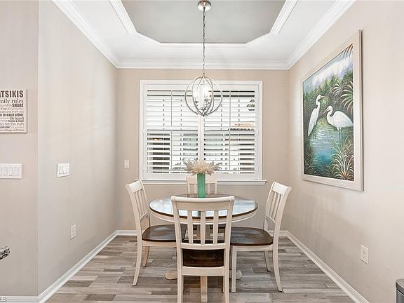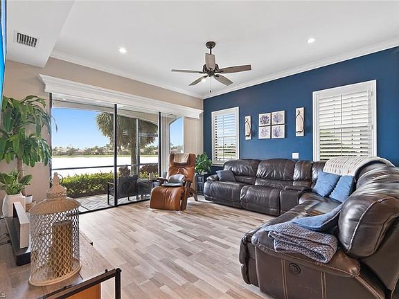 Welcome to Paloma! This beautifully maintained 2-bedroom plus den, 2-bath carriage home located in the gated community of Paloma in Bonita Springs. Enjoy peaceful lake views from this first-floor unit featuring numerous upgrades, including vinyl flooring, crown molding and custom trim work, and plantation shutters throughout. The spacious open floor plan offers a modern kitchen with granite countertops and stainless steel appliances. The primary suite includes a spacious closet and an en-suite bath with dual sinks and a walk-in shower. Relax on the screened lanai with an electric hurricane screen for added protection and comfort. Paloma offers resort-style amenities including a clubhouse, pool, fitness center, tennis, and bocce courts. Conveniently located just a short drive from shopping, dining, and Gulf Coast beaches.