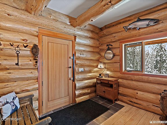 Stunning Log Home on Crystal Lake w/ 5.4 Acres! Watch the Iditarod Mushers From Your Property! Motorized Boats/Jet Skis allowed. Amazing Setting W/ Mature Trees, Incredible Sunset Views, All Day Sun on the Beach. Recreate in Luxury with In-Floor Radiant Heat, Central Vacuum & Large Laundry Rm. Filled w/ So Much Character, Vaulted Ceilings, Full Walk-Out Basement. Amazing Place To Make Memories!