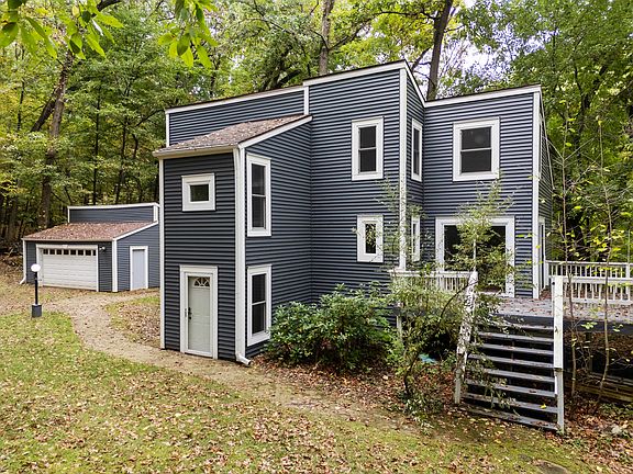 Rare find! If you love nature, privacy, a pool, and motorsports, this is for you! This 6.2 wooded acres comes with its own motocross track. The bathrooms need some updating and a new owners touch, but we priced the property accordingly. New siding and windows were done not long ago. The extra-large 2 car detached garage is sure to accommodate. The homes interior was just freshly painted & the charming original wood floors exist through much of the home. The quaint kitchen offers a nice serving bar directly to a large dining area that flows nicely into the living room. The sitting room/bedroom is adjacent and walks out to the deck that overlooks the pool and woods. The first floor offers a bedroom & full bath. The upstairs offers two nice sized bedrooms and a full bath. The basement has a large entertainment area, bedroom, laundry, wood burning stove & full bathroom. It's very difficult to buy a house currently and get instant equity! This is a beautiful piece of property,