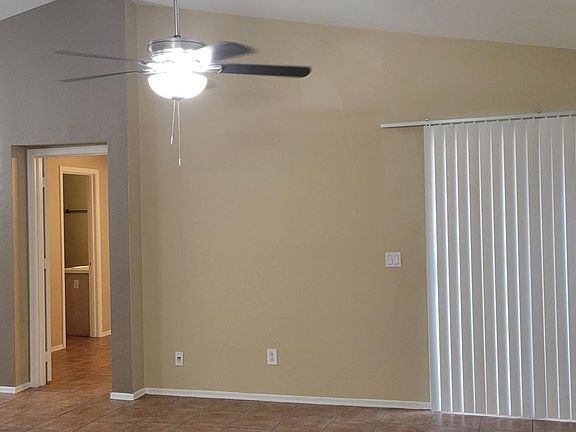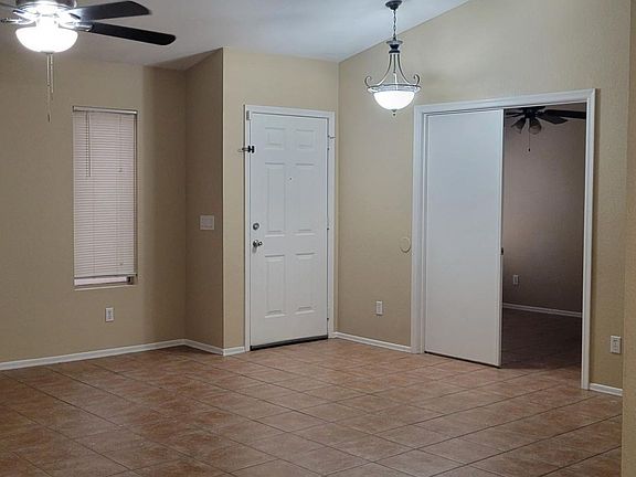 Four bedrooms. two baths, with tile throughout! Living room with vaulted ceiling; eating area in spacious kitchen. Stainless appliances including refrigerator, range, dishwasher and microwave. Wonderful floor plan, one bedroom also opens to the living room with double doors, so could be an office or playroom. Inside laundry with washer and dryer. New two-tone neutral paint, ceiling fans, blinds. Two car garage, fenced backyard with covered patio. View today!