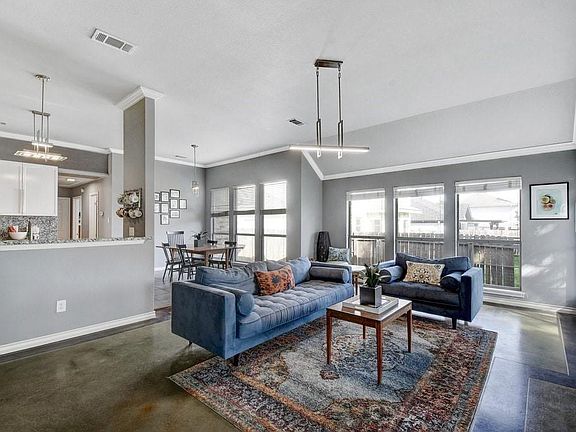 Upgraded & Move-in-ready modern home in Harris Branch! Open kitchen, dining & living plus bonus secondary living. Polished concrete floors and tile throughout - no carpet! Kitchen refinished with white cabinets, granite counters and center island. Low maintence backyard. Master retreat w/ barn door and updated master bath. Convenient access to major highways and toll road. Come see this beautiful home!