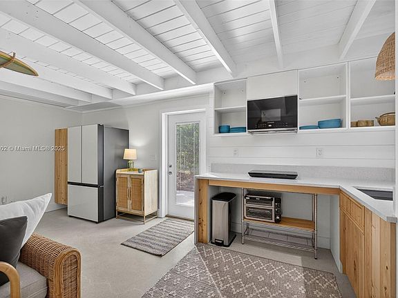 - Exterior features: 2 Spaces, Blinds, Clear Impact Glass, Electric Water Heater, First Floor Entry, Flooring: Concrete, Garden, Guest, Heating system: Central, In Ground, Less Than 1/4 Acre Lot, Lot Features: Less Than 1/4 Acre Lot, Outdoor Shower, Patio, Roof Type: Shake Shingle, Short Term Lease, Utility Room/Laundry, View Type: Garden, View Type: Pool