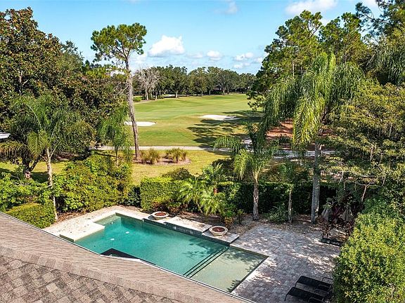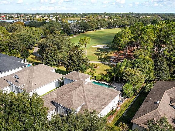 One or more photo(s) has been virtually staged. Newly added virtually staged images to help with your interior design inspiration! Come home to a golf enthusiast’s dream set along the 6th Hole of the renowned Jack Nicklaus Signature 18-Hole golf course, The Golden Bear Club (est. 1999). The community of Keene's Pointe features 24-hr guards at both entrances (Main Entrance off Chase Rd (Residents/Guests); Second Entrance off SR535 (Vendor/Resident/Guest). Built in 2002, the home spans 2,658 square feet and is situated on a spacious 0.29-acre lot. The back-exterior vistas include a spectator’s view of the hole, and a Florida wildlife sanctuary towards the rear-right of the property. From the rear lanai and chic tiled pool, take in the Thursday Men’s Golf Game, seasonal bird watching or prepare a chef’s meal. The interior of the home features 4 bedrooms and 3.5 bathrooms. Constructed by Morrison Homes, the open floor plan was designed to seamlessly connect entertaining spaces combining gatherings and everyday living. Wood flooring, crown molding, and tray ceilings add a touch of sophistication throughout. In the heart of the home, the kitchen features custom cabinetry, granite countertops, double ovens and a gas cooktop. The master suite serves as a serene retreat, offering tray ceilings, crown molding, and picturesque views of the open-air pool and golf course beyond. The primary bath features separate vanities, jacuzzi tub, a separate walk-in shower and two walk-in closets. Imagine, you vacation where you live in Florida's year-round sunshine on the covered patio and taking in the rays on the large pool lanai. The landscaped backyard offers privacy poolside with open vistas of the golf course and woodline. Additional features include the summer kitchen and a three-car side-entry garage, providing ample space for vehicles and storage.