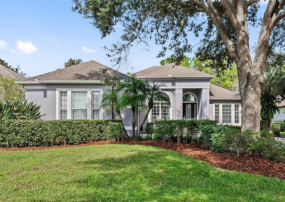 Come home to a golf enthusiast’s dream set along the 6th Hole of the renowned Jack Nicklaus Signature 18-Hole golf course, The Golden Bear Club (est. 1999). The community of Keene's Pointe features 24-hr guards at both entrances (Main Entrance off Chase Rd (Residents/Guests); Second Entrance off SR535 (Vendor/Resident/Guest). Built in 2002, the home spans 2,658 square feet and is situated on a spacious 0.29-acre lot. The back-exterior vistas include a spectator’s view of the hole, and a Florida wildlife sanctuary towards the rear-right of the property. From the rear lanai and chic tiled pool, take in the Thursday Men’s Golf Game, seasonal bird watching or prepare a chef’s meal. The interior of the home features 4 bedrooms and 3.5 bathrooms. Constructed by Morrison Homes, the open floor plan was designed to seamlessly connect entertaining spaces combining gatherings and everyday living. Wood flooring, crown molding, and tray ceilings add a touch of sophistication throughout. In the heart of the home, the kitchen features custom cabinetry, granite countertops, double ovens and a gas cooktop. The master suite serves as a serene retreat, offering tray ceilings, crown molding, and picturesque views of the open-air pool and golf course beyond. The primary bath features separate vanities, jacuzzi tub, a separate walk-in shower and two walk-in closets. Imagine, you vacation where you live in Florida's year-round sunshine on the covered patio and taking in the rays on the large pool lanai. The landscaped backyard offers privacy poolside with open vistas of the golf course and woodline. Additional features include the summer kitchen and a three-car side-entry garage, providing ample space for vehicles and storage.