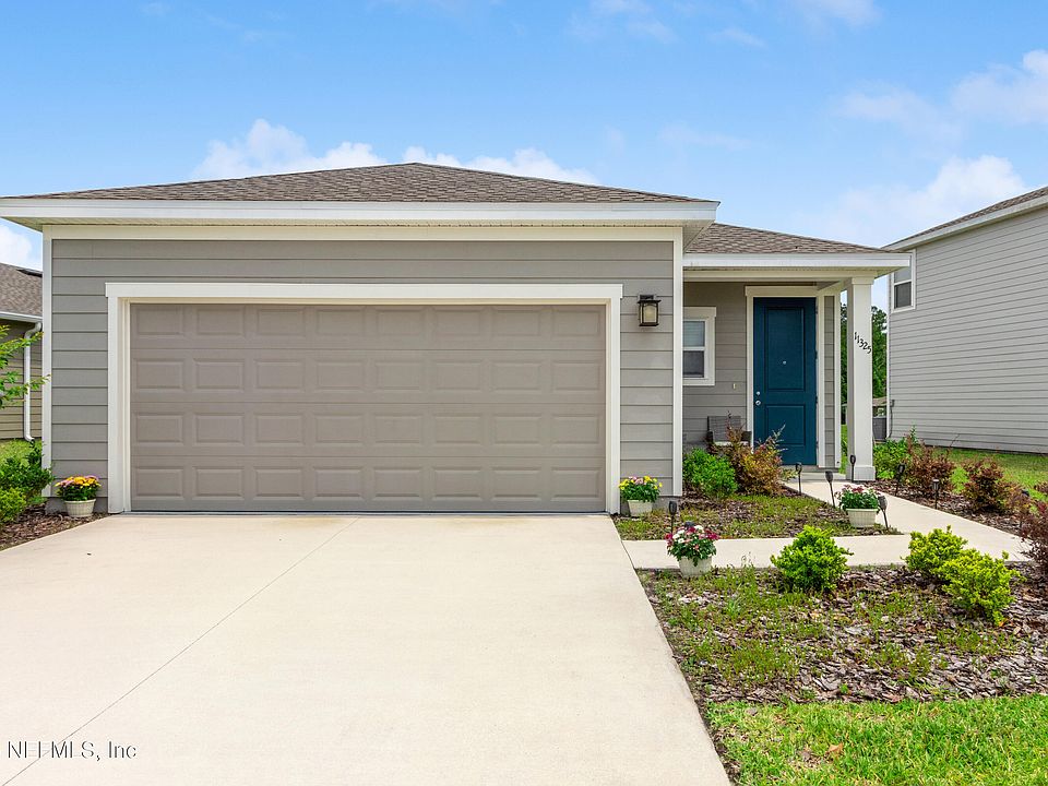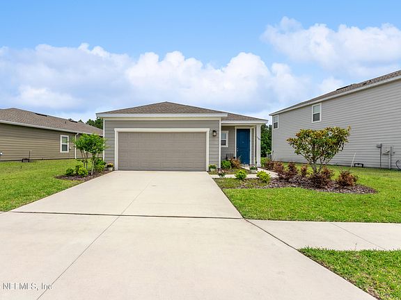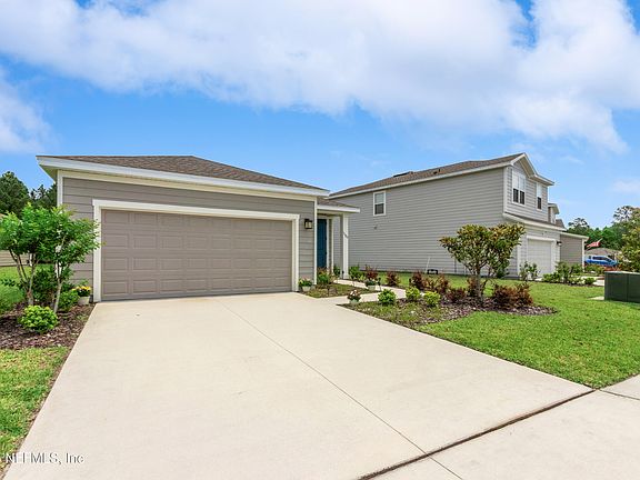 PLEASE SEE THE SPECIAL FINANCING INCENTIVE AVAILABLE ON PHOTO #2 WHEN USING PREFERRED LENDER! ~ Welcome to your new ''Home Sweet Home''! Why wait on new construction when you can move right into this pristine 2023 built home located in the highly desirable Panther Creek Subdivision with NO CDD fess and low HOA! This 3 bed 2 bath split floor plan has the perfect layout for entertaining. Walk in to experience 9-ft ceilings, neutral tones, recess lighting, plenty of natural sunlight, & relaxing pond views from your main living area. ENJOY THE LARGE SCREEN TV THAT WILL STAY WITH THE HOME! The kitchen features granite countertops, large kitchen island, stainless steel appliances, & pantry. The spacious master bedroom suite features a walk-in closet, dual vanities, & large shower perfect for unwinding after a long day! There are 2 additional bedrooms great for guests, home office, home gym, or whatever your heart desires. Enjoy Smart Technology with your Honeywell smart thermostat & WIFI-enabled garage door opener. Garage also has updated epoxy flooring. The backyard is fully fenced & has plenty of space for your furry friends to run & play. FOR YOUR ADDED PEACE OF MIND, SELLER IS OFFERING A ONE YEAR OLD REPUBLIC (GOLD) HOME WARRANTY! Amenities include clubhouse, pool, gym, pickleball, multi-purpose field, tennis courts, 27-acre lake, walking trails, dog parks, & much more! Convenient to I-295, shopping, dining, and entertainment. Schedule your appointment today!