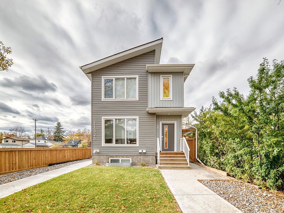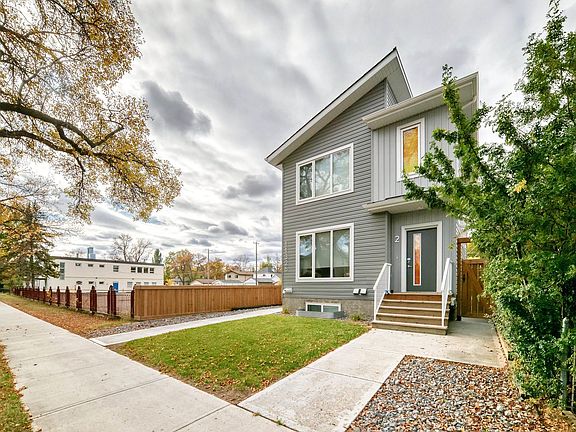 Gorgeous half duplex with legal basement suite & NO condo fees!! Qualify for a larger mortgage with the rental income! One of a kind real estate investment! A turn-key home that includes all appliances (even for suite!), fencing, and landscaping! Includes detached single car garage. Modern open concept design with high-end finishing, including vinyl-plank flooring, pot lights & electric fireplace! Perfect design for entertaining! Kitchen features quartz counter tops, modern cabinets, soft close drawers & Samsung stainless steel appliances. 2 dueling master bedrooms with two stylish full bathrooms and walk-in closets. Upstairs laundry and NO CONDO FEES! The legal basement suite features a living area, full kitchen, laundry and one spacious bedroom. All with the same high end finishings as upstairs. A truly great investment property! Close to Kingsway Mall, Yellowhead Trail and the Royal Alex Hospital.