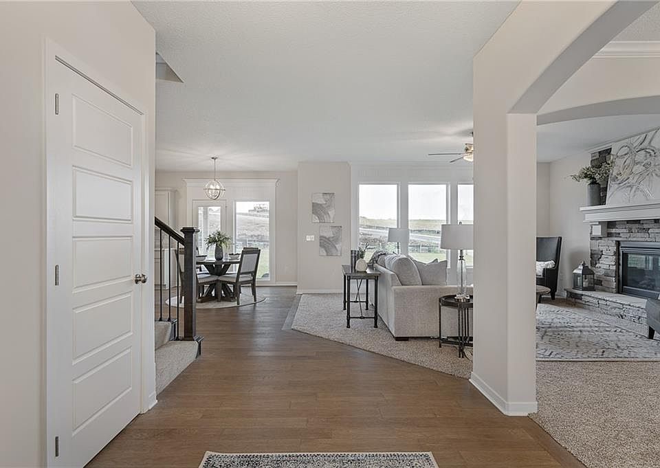 Levi II - Alt Porch. The Levi II is one of Prieb's most popular floor plans and features a large island in the kitchen and painted cabinets. There is a flex room on the main floor off the kitchen perfect for a home office with a full bathroom located close by. A stone fireplace in the great room and open floor plan are favorite features of this home. The primary bedroom has a huge primary bathroom with double vanities and granite countertops, separate shower and freestanding tub, and large walk-in closet. The laundry room is conveniently located next to the primary closet. The 3 secondary bedrooms upstairs are all spacious and have direct access to a bathroom. Please note that the photos provided are of a previously built Levi II spec, and some features may not be included. It's recommended that buyers work with their agent to confirm the details of the home. Decor selections are still available.
