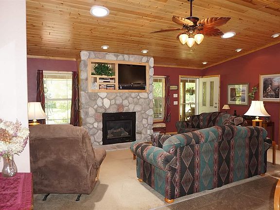 SHANGRI-LA! Euphoric 3 BR/2 BA Ranch w/Open-Floor Plan, Master BR Suite, Screen Porch, Green House & Pole Barn w/picturesque glens on 16.97 Acres in Village of Solon Springs! 2008 Badger-Blt stick-blt, modular home w/Ceiling Fans, Solid Pine Drs, 200 amp breakers, Central Air, Propn Forced Air heat & Poured Concrete tall Crawl Space w/Pressure Tank! LIVING ROOM w/Rock Gas Fireplace & 2 newer tube lights-15! EAT-IN KITCHEN w/Hickory Cabs, Island w/Power & Skylight! FORMAL DINING w/Patio Dr to SCREEN PORCH! MASTER BR STE has Mstr Full BATH with walk-in/sit-down Shower, deep corner Tub, dbl Sinks & 7x6 walk-in Closet w/attic & crawlspace access! Remod'd FULL BATH w/Skylight & Vinyl Floor! MUD Rm w/LAUNDRY! 08-Blt Det'd 26x36 3+Car Garage, 2000-Blt Redwood Storage Bldg, Root Cellar, 2008-Blt 12x10 Greenhouse/Potting Shed & 30x45 Pole Barn w/Wood-Heated WORKSHOP, STORAGE RM & Man-Cave/She-Den w/Plumbing! Home has Vinyl-Sid, Vinyl Windws, 60x8 Cov'd Porch, Deck w/Rails, Shutters, Alum soffits & fascia, 60' Drill'd Well w/pump-08, Conv'l Septic, Ext Lights & water, Dog-friendly fenced-in area, Landscaped yard w/boardwalk, split rail fencing, blue stone fire ring, flag pole, rock, gardens, walkways, pond, Maple, Oak, Roses, raised flower beds & raised garden w/Grape Vine Arbor produces Blue Bell Grapes! Incl: all Appl, Window Coverings, Greenhouse, garden Windmill & 1-Yr HMS Home Warranty! Close to dining, coffee shop, shopping, parks, grocery & hardware stores & Upper Lake St Croix!