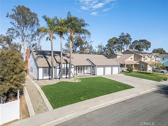 La Sierra Hills POOL HOME with stunning views. This home features 4-bed, 2.5-bath on the main level with upstairs loft that could be transformed into the 5th bedroom. The double door entry leads you to high vaulted ceiling entry and through out, a living room with plenty of natural light with french doors to access the front porch, a formal dining room with sliding glass door. The kitchen has new appliances, new countertops with a spacious island and open floorplan to an eat-in area and a family room with a fireplace. Open staircase leads to an upstairs loft. Popular floorplan has 3 bedrooms and a full and a half bathroom, the primary bedroom (bedroom 4) on the opposite side has double door entry with a fireplace, sliding glass door, new flooring and fixtures. Sparkling pool and spa with sunset views. Prime hilltop lot with unobstructed views of the surrounding hills, city lights, and mountains in the distance. Low taxes, no HOA, RV parking potential, and easy access to the 15 freeway.