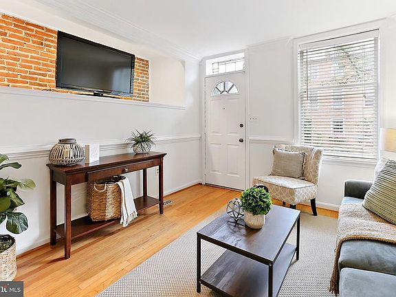 This home is the definition of Baltimore City charm with hardwoods and exposed bricks throughout. The custom lighting on the main levels design gives a relaxing ambience that's rare to come by. Walk into the front door and into the living room. Just past the stairs you'll find the dining room area and beyond is the galley kitchen. On the backside of the kitchen there is an office space with a built-in desk. Through the back door you will find the main level patio where one can have a cup of coffee to start your day or a glass of wine to unwind. There is a large flower bed on the backside of the patio where one could have an herb garden or accent the patio with flowers. The patio has access to the front of the street down the Sally Port walk way. Up the stairs on the second level you will find two large bedrooms with one full bathroom in between. On the second level there is a large closet in the hall with custom built in shelving. Up the stairs to the third-floor is the master level. Original polished hardwoods accent the brick walls giving this room a very natural homely vibe. There is a large master bathroom on this level with access to a large deck where one can enjoy a city skyline view. The basement is partially finished and can be used for storage and has plants of space for a variety of items. The washer and dryer are in the basement and there is enough ceiling height to be able to comfortably walk around. This home stands on the forefront when compared to other because of all of the custom features and natural tones of brick and original hardwood. The location doesn't get any better being two blocks away from Federal Hills famous Cross Street Market and two blocks away from the Harbor and Harborviews Di Pasquale's. The Out Post restaurant is a stones throw away. You can find easy access to I-95 just off of key highway and enjoy the Southside Market Place and McHenry Row Shopping Centers for all of your local goods and needs.--