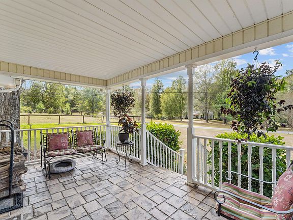 Enjoy peaceful country living on 8.53± acres with this spacious 4-bedroom, 2-bath home on desirable Buddy Vines Camp Rd. The large front porch welcomes you into a cozy living room with a wood-burning fireplace. The kitchen has abundant cabinets, generous counter space, an island with gas cooktop stove, stainless steel appliances, and a huge walk-in pantry. The open dining area flows into a bright sunroom, perfect for year-round enjoyment. Hardwood, tile, and carpet throughout. Oversized bedrooms offer great closet space. The primary bath features a jetted garden tub, separate shower and double vanity. Outside, enjoy a 4-stall barn, chicken coop, tractor/hay shed, fenced pasture (ideal for horses, goats, llamas, or sheep), open patio off primary bedroom and a refreshing in-ground pool with a new pump and filter. Bonus features include a 20'x40' detached storage building with roll-up door and RV parking with a 30-amp hookup. A rare opportunity for space, functionality, and country charm!