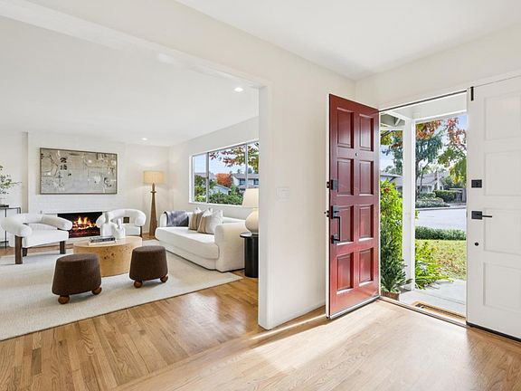 Set on a desirable corner lot along a quiet pocket street, this inviting split-level home offers space, comfort, and thoughtful updates throughout. Refinished hardwood floors extend across the main level, where the formal living room is anchored by a fireplace and a wide picture window, framed by the mature shade tree outside. The adjoining dining room enjoys leafy backyard views and a modern chandelier, creating a warm setting for everyday meals or gatherings. At the heart of the home, the renovated kitchen features quartz countertops, stainless-steel appliances, a tile backsplash, and a bright breakfast nook with sliding doors leading out to the deck and backyard. Downstairs, a guest bedroom, spacious secondary living area with a wet bar, renovated full bath, and yard access provides ideal flexibility for media use, guests, or multigenerational living. Upstairs, the serene primary suite offers dual closets, a covered balcony, and a refreshed ensuite with dual sinks and contemporary finishes. Two additional bedrooms with verdant backyard views share an updated hallway bath. The backyard is a private retreat with a raised deck, patio, and mature landscaping. All just minutes from Apple Park, Santa Claras Koreatown, Valley Fair, Santana Row, I-280, and SJC.