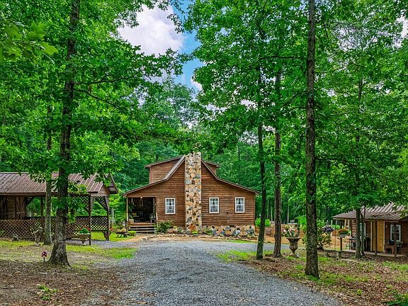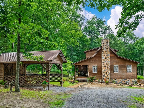 FIND YOUR MOUNTAIN PEACE in this charming, well-kept, 2BR/2BA, cedar & stone Mentone cabin. All wood interior w/stone, wood-burning fireplace & vaulted ceiling in LR; handy kitchen w/food-prep/keeping room; separate dining area. Covered front porch; screened back porch w/insulated storage/craft room; small side deck in fenced back yard; cute little gardening shed; carport w/great storage; multi-level fish pond that gets fed by a spring (but it does get awfully low in high, hot summer), thoughtful plantings, raised garden beds for veggies or flowers. Circle drive; corner property; approx 1.62 unrestricted acres, mostly wooded. Less than 5 miles from downtown Mentone. $350,000