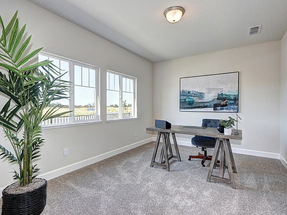 New - Beautiful - Energy Efficient! 2 Bedrooms, 2 Bathrooms, Flex Room with Office Option. Granite counters, custom shaker cabinets, stainless steel appliances, and luxury vinyl plank flooring and covered patio elevate this 1,780 sq. ft. home located in Dry Creek Oaks, a gated 55+ active adult community in Galt (short drive to Sacramento or Stockton). 4,500 sq. ft. clubhouse on-site with swimming pool, pickle ball courts, bocce ball, putting green, horseshoes, has pedestrian and golf cart access to public walking/biking trail. Close to Dry Creek Golf Course!