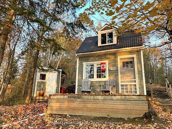 Welcome to your private nature retreat on Barkway Lake, featuring 125 feet of west-facing lakefront. This isan incredible opportunity to embrace a serene off-grid lifestyle just two hours north of downtown Toronto and25 minutes from Gravenhurst. With few neighbours on this tranquil, non-motorized lake, it feels like glamping in Algonquin Park! The property boasts a charming turnkey 108 sq. ft. wooden sleeping structure equipped with solar power an asphalt roof, loft, and a large deck perfect for reading and enjoying stunning waterfront views. Most items within the structure and on the lot, including two boats, a lawnmower, furniture, tools, and water toys, are included. Additionally, youll find a detached outhouse featuring a chemical toilet, a shower with a grey-water system, and a small storage shed. Access is via a municipal road with seasonal access, and theres parking for up to four vehicles. Hydro is conveniently located at the back of the lot for easy connections. If you're an outdoor enthusiast who loves fishing, paddling, bird watching, and breathtaking sunsets, this tranquil property is perfect for you. Start creating lasting memories today! For a closer look at this extraordinary property, follow @muskokatinyhome on Instagram and prepare to fall in love. Please refrain from entering the property without a scheduled showing with a real estate agent. Buyers and their agents should conduct their own due diligence regarding financing and permitted uses.