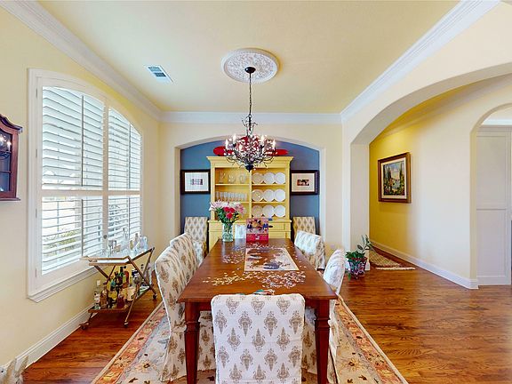 Discover your dream home in the charming neighborhood of Bridges at Preston Crossing, Gunter, TX. This spacious 2,968 sq. ft. residence offers a perfect blend of elegance and comfort, featuring three generous bedrooms. Step inside to find a beautifully designed interior with tasteful details and stunning hardwood floors throughout. The open-concept living area is ideal for both relaxing and entertaining, complete with a cozy fireplace and built-in shelving. The chef’s kitchen is a true highlight, boasting modern appliances, ample cabinetry, and a large island with seating, perfect for casual dining. Delight in formal meals in the graceful dining room filled with natural light from large windows. The master suite is a serene retreat, featuring a luxurious bathroom with dual vanities, a soaking tub, and a spacious walk-in closet. Enjoy the Texas sunshine in your private backyard oasis, complete with a sparkling pool and plenty of space for outdoor entertaining. Additional features include a dedicated office, ample storage, and a laundry room for added convenience. Located within a community known for its excellent schools, this home provides easy access to local amenities while offering a peaceful suburban lifestyle. Make this exquisite property your forever home and experience the best of Gunter living.