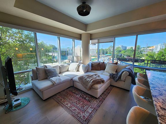 This gorgeous condo is centrally located in Uptown Charlotte. The building is completely secured with 24*7 security present on-site. Several retail stores (Trader Joe's, Best Buy, Marshalls, Burlington, CAVA, Dressler's, Joan's Bakery & Deli, Lost World Brewing, Open Rice, Pizzeria Omaggio, Pisces Sushi Bar & Lounge, Teriyaki Madness, The accidental Bakery, Waterbean Coffee, Which Wich, Petsmart, At-Home and many others) are located in the building for convenient shopping and dining. Open the front door and discover the newly installed upscale engineered hardwood throughout the condo. The kitchen is equipped with stainless steel appliances, granite countertops, soft-close drawers, a wine refrigerator, an upgraded Island, and an enlarged undermount sink with an upgraded nozzle. The living room boasts wrap-around windows with electric blinds and a private balcony with a perfect city view. The bedroom features a 2nd private balcony, two large walk-in closets, and a large bathroom with a walk-in shower complete with a rainfall showerhead. The bathroom vanity features a granite sink and soft-close drawers. The laundry closet is located in the bathroom with room for a stackable washer and dryer. Modern upgraded light fixtures throughout and built-in storage cabinets throughout. The condo includes an on-site fitness center and outdoor pool. 1 designated parking spot is available on the 4th-level parking deck. Tesla superchargers are installed on the 6th level of the parking deck and can be used by anyone. Luxury awaits you inside this condo!