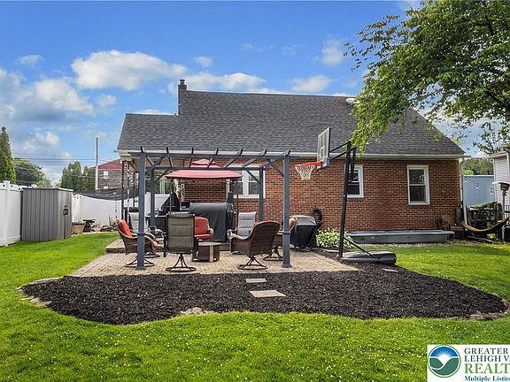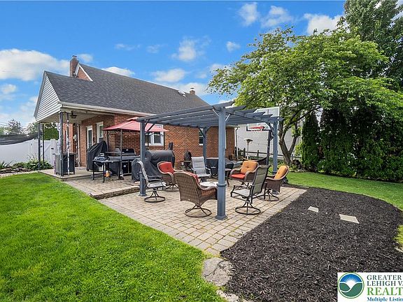Come Home for the Summer to this Parkland Cape Cod Gem! This beautifully updated Cape Cod in desirable South Whitehall is perfectly set on a lushly landscaped, fenced lot. Enjoy the outdoors this summer with a charming covered front porch, a custom paver patio, pergola, and a tranquil koi pond. Inside, a spacious living and dining area shines with gleaming hardwood floors and a cozy gas stove. The remodeled kitchen is a showstopper—featuring granite countertops, an undermount sink, tile backsplash, a center island with seating, and top-of-the-line stainless steel appliances, including a brand-new LG refrigerator, 5-burner gas cooktop, and dual convection ovens. Enjoy easy one-floor living with a first-floor primary suite complete with his-and-hers closets, hardwood floors, and a ceiling fan. The updated main bath includes a tiled shower, tile flooring, and a linen closet. Upstairs, you'll find two generously sized bedrooms, each with walk-in-style closets and charming window seats. A versatile hallway area makes a great office or reading area, with additional storage tucked away in the attic eaves. The finished LL adds even more value with a family room, wood stove, wet bar, half bath, and a spacious laundry/storage room featuring a built-in workshop. Additional highlights include economical gas heat & central air, replacement windows, and new water filtration & softener system. This move-in ready Parkland School District beauty is ready to welcome you home!