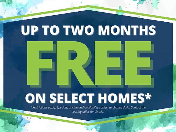 - Special offer! Up to Two Months Free on select homes! *Limited time offer. Restrictions apply. Specials, pricing and availability subject to change daily. Contact the leasing office for details.