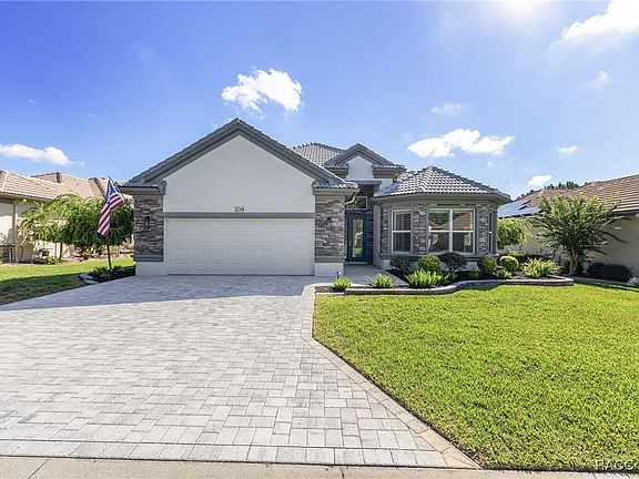 Located in the gated community of Terra Vista, this stunning Hunt Club residence offers custom design and numerous upgrades. With 2,492 square feet, the home includes two bedrooms, a dedicated office or optional third bedroom and immaculate finishes throughout. Why wait on new construction when this home is ready now with top-tier features at every turn. Only the best of the best for this beautiful home. Interior highlights include soaring ceilings, marble flooring throughout, 8-foot doors, lighted tray ceilings and a custom entertainment center in the great room. Premium details include upgraded top-of-the-line flooring, countertops, lighting and custom window coverings, Hunter Douglas Power Sheer Shades and plantation shutters. The kitchen showcases a large 11-foot island with cabinetry on both ends, quartz countertops, marble backsplash, KitchenAid appliances, custom glass cabinets with interior lighting, LED underlighting and dual cabinet pantry with pull-out drawers. The built-out laundry room offers additional storage and workspace. The primary suite provides two walk-in closets, dual vanities and a spacious walk-in shower. An expanded guest suite features a full walk-in shower, while the additional flex room could be used as an office, playroom or a third bedroom. Unmatched elegance in outdoor living where the beautiful Travertine tiled lanai overlooks the sparkling saltwater pool with water feature. For your entertaining needs, an outdoor kitchen featuring Firemagic 36" Echelon Diamond Grill with digital controls and rotisserie, providing unlimited entertainment for your friends and family. Built with energy efficiency in mind, the residence includes core foam insulation in the concrete block, a radiant barrier on the roof decking and an upgraded HVAC system with integrated climate and humidity control. The 24-by-24-foot garage with an 18-foot door provides ample storage for vehicles and recreational equipment. Terra Vista offers three 18-hole golf courses, a spa and fitness center, dining venues, tennis courts, a dog park, trails and more. A full list of amenities is available on the Citrus Hills website.