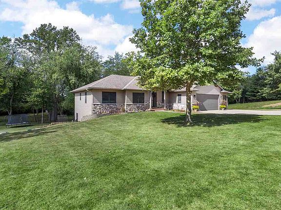 Welcome to your dream home! This gorgeous walkout ranch is situated perfectly on 4.5 serene acres & nestled on a quiet cul-de-sac in Riverside! The home features fantastic updates blending tasteful farmhouse charm with modern elegance and natural beauty. With 5 bedrooms and 3.5 baths, there’s plenty of space for all of your needs. The main level boasts a beautiful open floor plan with vaulted ceilings new fixtures and new tile floors throughout mimicking hardwood. The luxurious kitchen offers an island with breakfast bar, granite countertops, newer appliances including microwave with air-fryer. Access the large maintenance free, composite deck from dinning area as well as dedicated laundry room and lovely powder room. Enjoy the expansive LL living space freshly finished, complete with 9' ceilings, a stylish wet bar, 2 bedrooms, full bath including stunning tile shower and ample storage. Your guest will be in awe over the custom, handcrafted black cabinetry accented with gold fixtures and custom natural wood floating shelves. The 5th bedroom in the LL is designed as a chic office, featuring barn doors and built-in floating shelves. The sprawling 3-car garage provides plenty of space for vehicles, storage and even a workbench. Your daily life will be like a retreat set on a spacious wooded lot with a charming creek, adding to the pure tranquility.