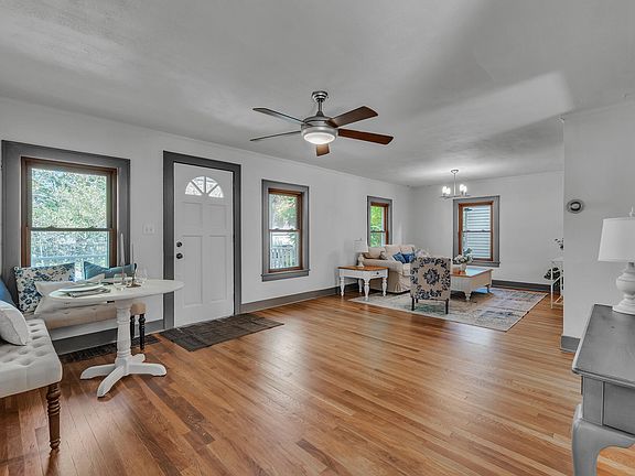 Charming covered porch opens to a light-filled living room w/ adjoining dining area. Entry level offers three bedrooms, a full bath, & kitchen that walks out to expansive backyard. Freshly refinished original hardwood floors gleam throughout.