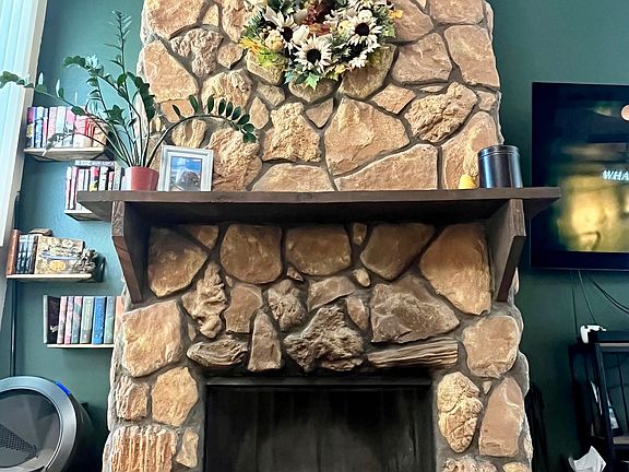 Cozy wood-burning fireplace