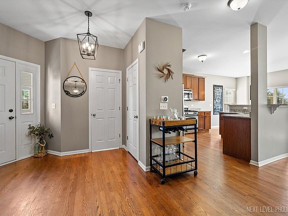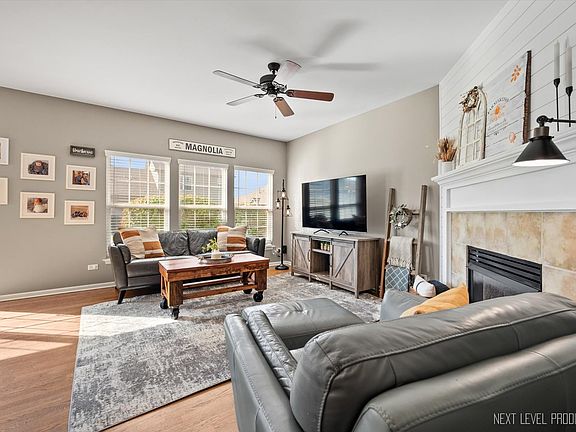 Picture perfect duplex ready for its next owner! The open concept floor plan makes everyday living effortless and entertaining a delight. Rich oak hardwood floors flow throughout the main level. The living room features a cozy corner fireplace with a custom shiplap surround, while the kitchen is a showstopper with 42" cabinets topped with crown molding, granite countertops, stainless steel appliances, breakfast bar, and eating area with a sliding glass door that opens to a beautiful paver patio. Upstairs, the versatile loft is perfect for a home office, playroom, or whatever your lifestyle calls for. The primary suite boasts a vaulted ceiling, a spacious walk-in closet, and a luxurious en-suite bath with dual sink vanity, soaking tub, and separate shower. Two secondary bedrooms share a full Jack & Jill bath, and the convenient 2nd floor laundry makes chores a breeze. The finished basement offers incredible extra living space with room to relax, host, or work out, plus a half bath for added convenience. A 2-car attached garage and a nice-sized yard complete the package. Enjoy outdoor living on the stunning paver patio while overlooking your private yard. Located in charming Elburn, you'll love the small-town feel with modern amenities and easy access to shopping, dining, hospital and METRA station that is only minutes away!