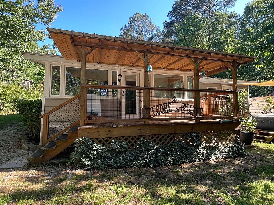 Own a piece of American history located on Newford Creek at Clark's Hill/Lake Thurmond. Once part of US Army Barracks at Fort Gordon this Lakefront Cottage has all the charm of home in a peaceful setting! Also included is the original Hester's Ferry store! This charming home has detail with an artistic twist. The dine-in kitchen has custom wood countertops, open shelving and windows turned cabinets. The living area open onto your very own sunroom or sleeping porch? The full bath with small separate vanity is located alongside a small bedroom with open closet space. The primary bedroom is tucked away at the end of the cottage opening onto a small deck. The covered porch has access to the fenced backyard AND your own outdoor bath and shower. Great views of the water AND private boat access!