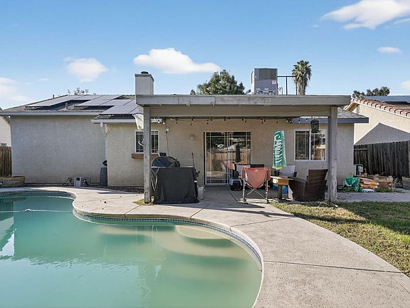 Tucked within one of Hanford's most inviting neighborhoods, this beautifully maintained single-story home combines thoughtful design, energy-efficient upgrades, and everyday comfort. Featuring three bedrooms and two bathrooms across 1,233 square feet, the layout offers an effortless flow with the main suite set apart for privacy and relaxation. The open living space includes a cozy fireplace, durable tile flooring, and an easy connection to the dining and kitchen areas ideal for both daily living and hosting with ease. Step outside to a backyard made for California living. The sparkling in-ground pool sets the stage for sunny weekends and summer evenings spent outdoors, while the low-maintenance landscaping keeps things simple and serene. With solar panels, this home offers lasting energy savings and sustainability that new homeowners will appreciate. Built in 1997 and cared for by its veteran owner, this residence reflects pride of ownership and thoughtful updates throughout. Its convenient Hanford location provides quick access to major local employers, nearby shopping and dining, and an easy commute to Lemoore, Visalia, and surrounding areas. Whether you're purchasing your first home or looking for a place to put down roots, this property offers a refined blend of style, function, and value. FHA and VA buyers are welcomeschedule your private tour and see how this home perfectly balances comfort, quality, and Central Valley living at its best.