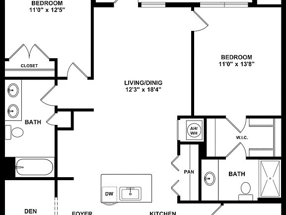 This units features two bedrooms, two bathrooms with a den and living/dining room. All units offer