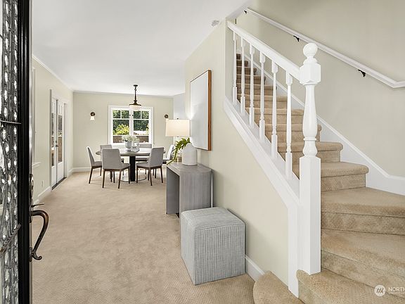 Expansive views of Lake Washington & Mt. Rainier from this serene four bedroom, three bath charmer in Northeast Seattle’s Matthews Beach neighborhood. Play croquet on the private flat backyard, Work from the handsome office, Entertain on the expansive main-floor deck, Unwind in the lower level recreation room, then Retreat to the tranquility of the upstairs primary bedroom deck. Impeccably rebuilt and thoughtfully expanded in 1990, this home combines updated systems and enhanced creature comforts to its already stunning architecture. Complete with a 2-car garage and nestled on a quiet dead-end street with convenient access to the Burke Gilman trail (1 Block) and Matthews beach. This one will win your heart!