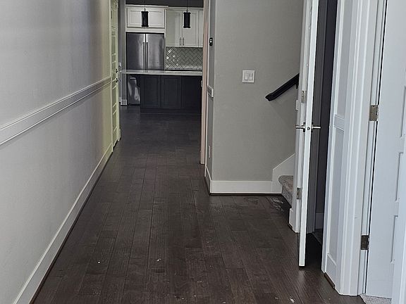 Walk through the double front doors which lead to the great room. You will also find a bedroom and a full bathroom downstairs. Hardwood floors in kitchen, living room and dining areas and carpet in the bedroom. The bathroom has quartz countertops and a shower/tub combo. Large living Room (can fit 2 11-person couches) has a gas fireplace and built-in storage/shelving. The kitchen has quartz counter tops, a large island with storage and a breakfast bar, and stainless steel appliances which include dishwasher, French door fridge, microwave, and gas stove!