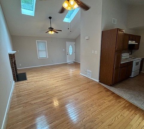 You will LOVE this FRESHLY painted one-level living! Home has LARGE family room with vaulted ceilings and wood burning fireplace. The galley style kitchen has lots of cabinets for storage. The eat-in kitchen/ dining area overlooks BRAND NEW deck and very large backyard, great for grilling! Additionally there are (2) bedrooms, (1) full bath in hallway and large primary with en-suite bathroom. So close to shopping, restaurants and great schools!