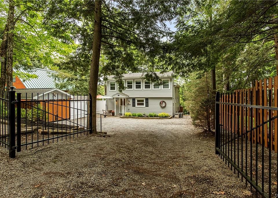 Rarely is such a maintenance free, year round lake house of such magnitude, and with so many options available today. The owner has designed this newly constructed 3 level property to accommodate individual and complete living quarters on each level, including bedrooms, full baths, kitchen, living and dining space each with its own private entrance (think rental income)! In total that's five bedrooms, three full baths, two full kitchens, and a kitchenette. Add to that incredible fully windowed living room overlooking the lake, a 4 season room to die for and a tranquil year round sunroom! Other perks include a fireplace, central air, high end flooring, security system, privacy fencing, two stall garage, carport, multiple outbuildings, unmatched landscaping, sandy beach, and a private dock. Come fall in love with this exceptional lake house and explore the possibilities!!