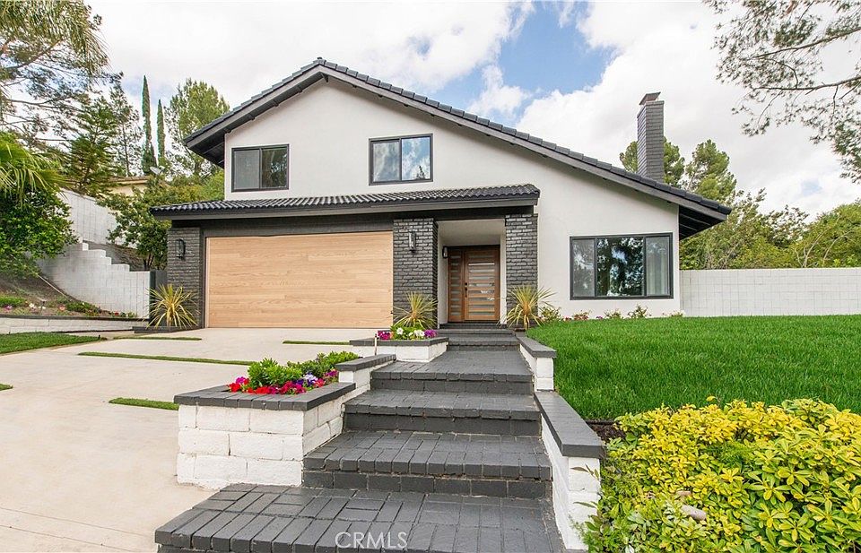 Extensively remodeled modern home in the heart of Porter Ranch, just steps to Porter Valley Country Club. No expense was spared in completing this 4 bedroom, 3 bathroom home. The wide plank hardwood floors that flow throughout and are further showcased by the natural light flowing through all new windows and door. The high ceiling entrance leads seamlessly to a spacious great room with vaulted ceilings and a welcoming fireplace with custom tile work from floor to ceiling. The open kitchen, framed by the breakfast island, features modern cabinetry, stainless steel appliances and custom counters and is ideally located between the great room, family space and insulated all glass wine room. All bedrooms are located upstairs including the master bedroom with a balcony and spacious en-suite bathroom. The master bathroom features LED light up mirrors, a makeup area, stand along soaking tub and large walk-in shower. Enjoy outdoor living under the trellis patio or take full advantage of the wrap around backyard complete with new landscaping and peek a boo view of the golf course. This beautiful home is conveniently located across the street from the country club and just minutes from shopping, the newly developed Vineyards, 118 FWY, hiking trails and all the very best Porter Ranch has to offer.