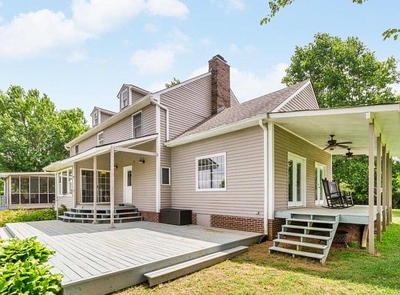 This home's tree lined driveway, covered porches and scenic views will remind you of a scene from ''Gone With the Wind''. Private acreage(apprx 10 acres) has a creek on its border and allows scenic views from every room of this 2 story home. Relax after a hard day on the screened porch (or any of the covered porches for that matter) or kick your feet up in the vaulted great room and enjoy woodwork finishes and the 2 story brick fireplace. This home isn't just spacious - it's functional too! HUGE kitchen has room for everything and laundry has full bath as well. No carpet here - great for those with allergies. Talk about relaxing - the newly renovated master bath's shower is designed with multiple shower heads and is part of a well thought out...