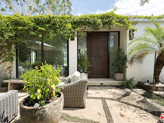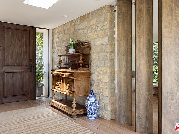 This dreamy Mid-Century single-level estate (c. 1961) in prime Studio City radiates magic from every corner and has been tastefully remodeled by the current owners. Nestled South of the Boulevard in the highly sought-after Dona streets, this exquisite 3,000+ SF property offers jaw-dropping, unobstructed panoramic views of the Hollywood Hills and surrounding canyons, all within one of the top-rated school districts in Los Angeles. Step through the vintage wooden front door and you are instantly met with a breathtaking reveal: expansive city views, an inviting yard, and a sparkling pool framed by nearly 19,000 SF of lush grounds. Before that panorama pulls you outside, a tranquil garden oasis and front courtyard with stone pavers and thoughtful landscaping greet you with serenity. Inside, abundant windows flood the interiors with warm natural light and highlight gorgeous wide-planked wood floors. Top features include recessed lighting, floor-to-ceiling windows and doors, skylights, custom built-ins, and a fully wired sound system throughout. Seamlessly blending rustic chic with modern elegance, the oversized living/dining room radiates relaxation, accented by stone walls and a dramatic central fireplace.The chef's kitchen is equally impressive, outfitted with top-of-the-line stainless steel appliances, a stone backsplash and waterfall peninsula with breakfast bar seating, a corner pantry, and built-in wine rack. Sliding glass doors connect the living and dining spaces to the outdoors, creating the ultimate indoor-outdoor flow. The backyard beckons with its sun-drenched pool, spacious deck and lounge, covered patio with outdoor kitchen, and ample green space to relax or play - all while soaking in those iconic views. Off the dining area, the luxurious primary suite offers direct hillside views, private lawn access, a spa-like bath with dual vanity, soaking tub, steam shower, and a large walk-in closet. Additional highlights include a second en suite bedroom, two more versatile bedrooms (one with custom built-in entertainment wall), a hall bath, and a detached two-car garage with laundry and bonus storage - ideal as a home gym or studio. A quintessential example of LA living, this home offers an unparalleled indoor/outdoor lifestyle in a serene yet vibrant setting. Available for lease furnished or unfurnished, it's a true Studio City showstopper.
