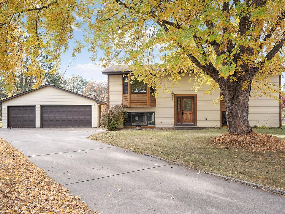 bedroom, family room, recreation room, and 3/4 bath! Lower level TV room was the fourth bedroom, but seller's took down the wall. Could easily be converted back to a fourth bedroom. Beautiful setting in back yard with lots of room to play and have bonfires! Huge three-car detached garage with plenty of room for storage! Great location near Champlin Park High School, restaurants and more!