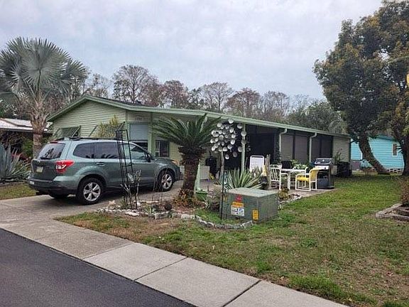 For sale is a lovely 2 bedroom 2 bath furnished manufactured home in Imperial Oaks, lot rent $720 a month including water trash sewer. New Port Richey. A gated, small, quiet over 45 community. This home has so much extra space you will love it! This charming home has an open feel, lots of closets, a utility shed off the large lanai which is equipped with hurricane shutters. There are lovely, gray laminated floors throughout. There is an outside patio great for outdoor dining and barbeques. Nicely landscaped but not labor intensive. Laundry can be done inside the home in a separate laundry room. This home will never have a residence across the street as its location is in the quiet back portion of the park across from a nature preserve. In the morning and evening you may see deer and various other wildlife. Sandy hill cranes wander about the park. The pool and clubhouse are close by, easy walking distance. The pool is kept at 83 to 85 degrees resulting in a therapeutic feel. Cards, bingo, dinners and dances and other activities take place at the clubhouse.