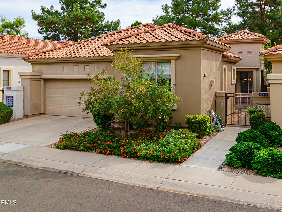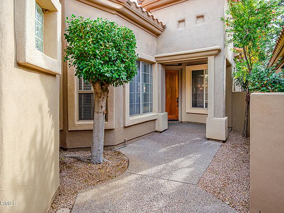 Experience the best of Scottsdale in this beautifully maintained 3-Bd, 2-Ba home offering 1,813 sq. ft. of comfort and timeless style. Enjoy breathtaking Starfire Golf Course views from your spacious covered patio, the perfect spot for morning coffee or evening relaxation. Inside, the open-concept design features a bright and inviting living area with a gas fireplace, dedicated dining space, and a well-appointed kitchen w/raised maple cabinetry, pantry, center island, and casual breakfast nook. The primary suite offers private patio access, large walk-in closet, dual vanities, soaking tub, and separate shower. Nestled within a gated community with resort-style amenities including a heated pool & spa, this home is ideal as a year-round residence, winter retreat, or investment property.