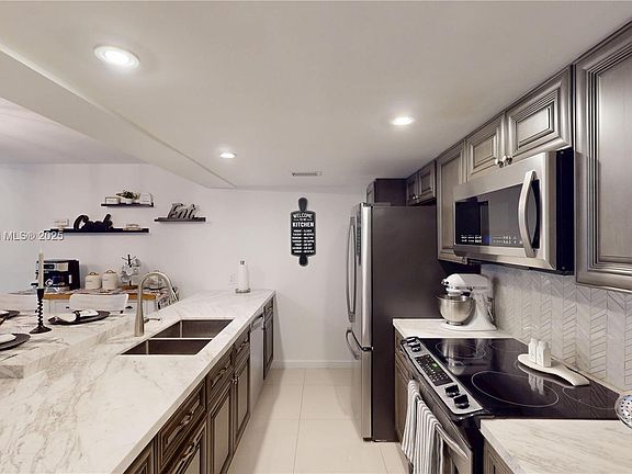 Nucore waterproof laminateGreek marble countertopsVaulted wood ceilingsSolid wood cabinetsHurricane shuttersRemodeled kitchenRemodeled travertine tile bathrooms