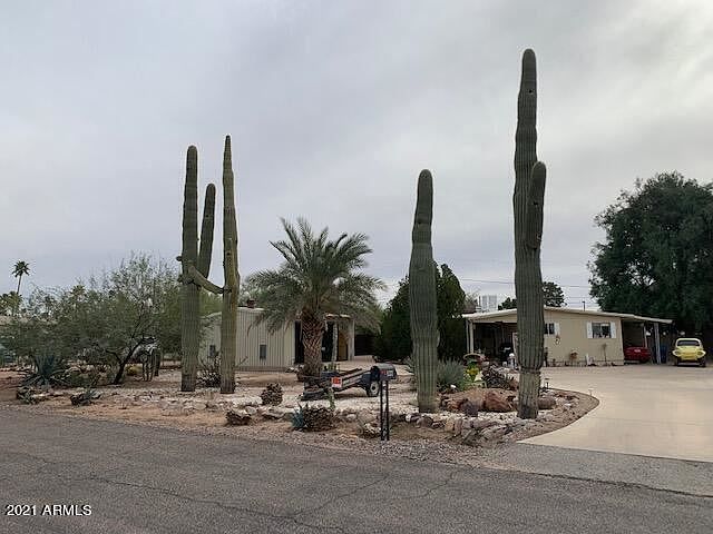 ******ALERT****** SQUARE FOOTAGE IS APPROXIMATLEY 800 AND NOT 400****Cash Only**** This home is fully furnished and is on a large lot with gorgeous mountain views. It features a detached two car garage that was permitted and built in 1994 and lots of parking on the concrete added by sellers. The original portion of the manufactured home was built in 1958 and a permitted addition was added in the 1980's by the original owners. The tax records do not reflect the square footage of the addition. There are mature trees and giant saguaros and other cacti in the yard. There are two storage sheds and a workshop with $$$ worth of tools included. There is a sun deck at the south end of the home, which provides beautiful views of the surrounding mountains, sunsets, and sunrises. Cash!!!