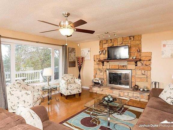 This lake home is being offered completely furnished. 3 bedroom 3 bathroom home, upper deck that seats 14, game room with pool table & wet bar, walk-out to lower deck. Open living with a native stone fireplace. Stainless steel appliances. Master suite with walk-in shower. Newer washer and dryer, one car garage, and upper driveway to side entrance. Sets on corner lot, with great neighbors. Has been used for a rental.