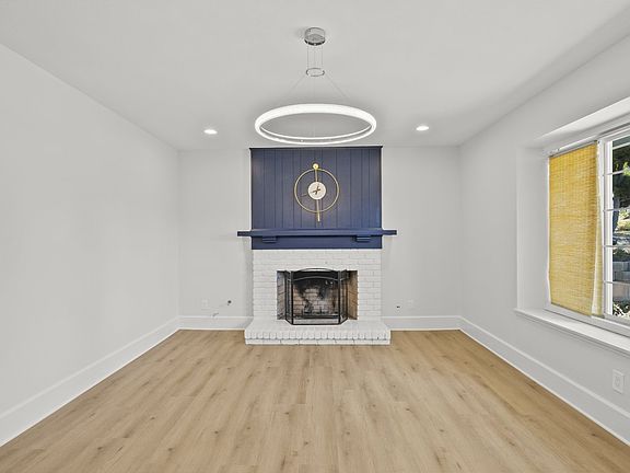 Additional highlights include a cozy fireplace, an individual laundry room, and an enclosed bonus patio that provides extra space for relaxation or entertaining. Wood, laminate, and tile flooring flow throughout the home, blending warmth with durability. Completing the property is a two car detached garage plus one outdoor parking space, offering both convenience and functionality.