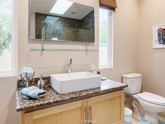 Walking out to the spectacular backyard, you see plenty of fruit trees, various desert plants, and 28 gorgeous palm trees, hence the name of the estate. At the center of this desert paradise is a large recently refurbished rare, tiled pool with a new integrated spa. Outdoor shower. Weber BBQ. There are numerous sitting and lounging areas throughout the property. Please pour yourself a drink, sit down, relax, and look up to the open blue sky framed by those impeccable palm trees and the majestic San Jacinto Mountains. Take a deep breath ... Welcome to your private oasis.