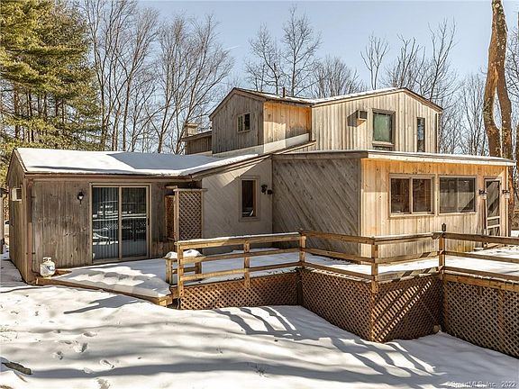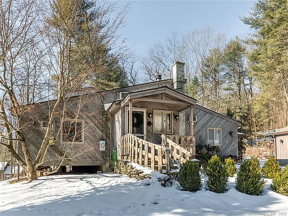 TREEHOUSE ? A great get away at the top of a long driveway. A private sun filled retreat. A very clever bright open floor plan. Two bedrooms on the first floor 1 1/2 baths on the first floor. An open kitchen. Wood burning stove in the living room for cold nights. A spiral stair case to the third floor bedroom with opening stained glass windows and a full bath. A seperate detached office with a full bath surrounded by almost 2000 square feet of custom decking. Minutes to: Mt. Tom Lake, Bantam Lake, Mohawk Mountain, 4000 acre White Memorial with hiking and biking trails. over 20 restaurants, and shopping.