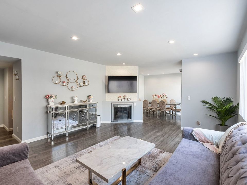Beauty, curb appeal and the perfect location are just some of the things you can expect when viewing this beautiful 2-bedroom and 2-bathroom condo in Glendale! This is a 1,046-SqFT open floorplan consisting of sleek grey laminate flooring, thick baseboard moldings, smooth ceilings with newer recessed lighting, lots of storage space, plus a newer AC unit installed in July 2021 that comes with a NEST thermostat! The home is a fabulous space to entertain. There is a living room featuring a decorative fireplace and a dining area with a sliding door that leads you out to a private balcony with a peek a boo mountain view. The unit has a modern Galley kitchen that is equipped with stainless steel appliances, as well as ample countertop and cabinets space. Both bathrooms are designed with modern vanities and fixtures. Both bedrooms are bright and spacious, both closets feature built-ins and NEW sliding mirror closet doors. The larger of the rooms is the Primary bedroom that offers 2 closets, including a walk-in closet and a private ensuite bathroom. Convenient laundry area with storage inside the unit. No neighbors above you! 2 side by side assigned parking spaces that are in a gated community parking structure. LOW HOA. Located in a sought-after Glendale area, North of Glenoaks, close to popular dining options, schools, gas stations, banks and more. Part of the Glendale Unified School District.